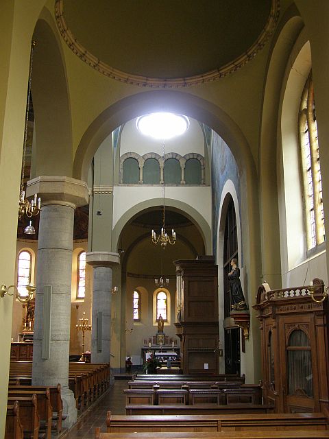 In de kerk zijn, naast ramen uit het atelier van F. Nicolas, drie wandschilderingen uit ca. 1952 van de hand van Eugène Laudy te bewonderen.