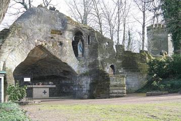 In ca. 1892 gebouwde LOURDESGROT in oostelijke hoek van het kruiswegpark. (De grot werd op 1 mei 1892 ingezegend en is daarmee een van de oudste Lourdesgrotten in Nederland. Daarbij waren 1500 gelovigen aanwezig. Bron: De Limburger, 7 mei 2012)
