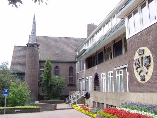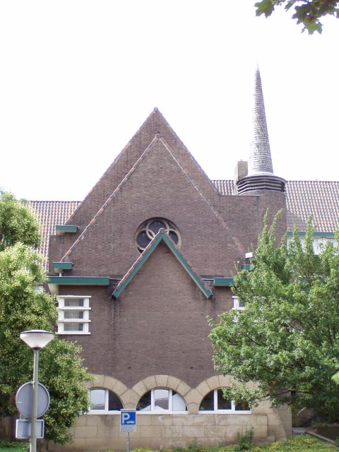 Het voormalige klooster heeft een loggia op verdieping. Links van de ingang ligt de voormalige kloosterkapel, ontworpen door A. Boosten.