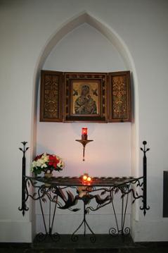 De kapel maakt deel uit van het kloostercomplex. Het is een neogotische kapel. Het interieur is geheel gestuukt en wit geschilderd. Het priesterkoor, gesierd door vier hoge glas-in-loodramen van pater Victor, staat op een verhoging waarop een orgel en een natuurstenen altaar staan. Het neogotisch gewelf is voorzien van ribben. De zangtribune heeft een fraaie, gebogen vorm. In de rechterzijde van het schip zijn hoge glas-in-loodramen van Charles Eyck aangebracht, de linkerzijde van het schip bevat kleinere ramen, eveneens van Charles Eyck. In het linkerschip, dicht bij het koor, is een doorgang naar een aantal neogotische zijkapellen, ook wit geschilderd. Elke kapel is voorzien van een altaar en van twee glas-in-loodramen van pater Victor. In de ruimte zijn ook een fraaie kruisweg, een pietà en een kruisbeeld, alle uit hout, te bewonderen.