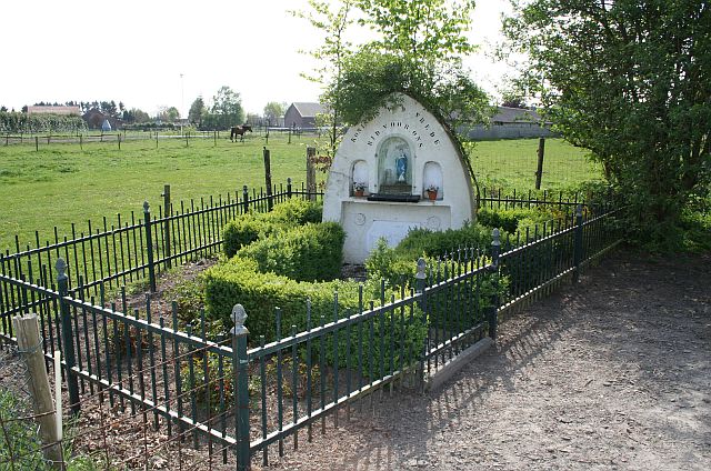De wit geschilderde kapel heeft het uiterlijk van spitsbogige steen waarin drie nisjes zijn aangevracht, een hoofdnis met daarin een Mariabeeld en aan weerszijden daarvan een kleine nis om bloemen in te zetten. Op een plaat onder de nis staat het jaartal 1941. Boven de nis is de tekst: KONINGIN V D VREDE, BID VOOR ONS' aangebracht.