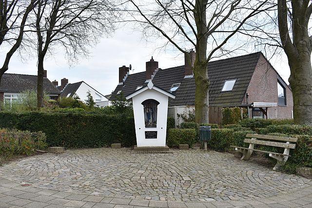 De kapel is glad gestuukt en wit geschilderd en is voorzien van een zadeldak. Voor de kapelnis is traliewerk en glas aangebracht om het beeld in de nis te beschermen. Ook het zijraam aan beide kanten is beschermd door traliewerk. Onder de nis is een plaquette met informatie over stichter en stichtingsdatum aangebracht.
