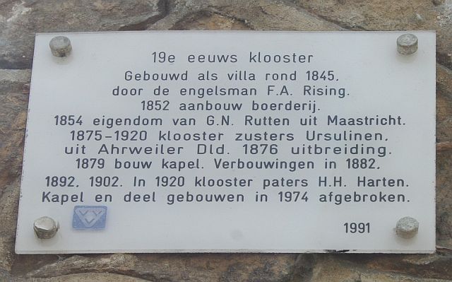 Het klooster op de Cauberg is vanuit een toenmalige villa met koetshuis gebouwd door de Duitse Zusters Urselinen (Ahrweiler) als kostschool voor jonge meisjes. Door de maatregelen van de Duitse regering Bismarck tegen de religieuzen, de zg. Kulturkampf, moesten de religieuzen vluchten. Zo kwamen deze religieuzen in Valkenburg net als de Duitse Paters Oblaten (Ravensbosch) en de Duitse St. Jozeffranciscanessen (Boschlust, vroeger Sint Pieter). Van 1876 tot 1877 bouwden de Urselinen dit complex aan de Cauberg. Toen de zusters weer naar de Moezel terug konden keren kochten de Paters van de H.H. Harten van hen dit huis in 1920. Deze van oorsprong Franse kloostercongregatie (Parijs 1800), meerdere malen door laicistische regeringen uit Frankrijk gezet, was de eerste die na de Franse Revolutie weer begon aan de verspreiding van het evangelie over de wereld, feitelijk Oceanië en Zuid Amerika. Haar beroemdste missionaris werd de Vlaming Damiaan de Veuster die melaats werd met de melaatsen op het beruchte eiland Molokai (1840-1889). In 2005 gekozen tot de 'beroemdste Belg'.