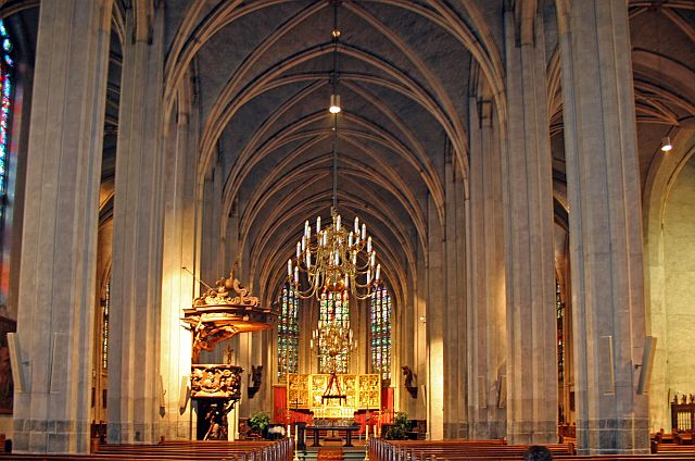 De kruisribgewelven van schip en koor worden gedragen door slanke vierkante pijlers met colonetten. Sacristie, zuidtransept en doopkapel hebben netgewelven. In deze kapel zien we achter een fraai 17de eeuws eikenhouten hekwerk, een door Herman de Potgieter in 1621 vervaardigde monumentale doopvont. Op het deksel staat een vergulde beeldgroep van Jezus’ doop in de Jordaan. De kerk is rijk aan kunstwerken zoals een barokke preekstoel uit 1707, laatgotische koorbanken en schilderijen van de Venlose schilder Jan van Cleef (1646-1716). Verder bevinden zich in de kerk diverse beelden uit de vijftiende en zestiende eeuw en in het zuiderkoor een kalkstenen Pietà uit de zestiende eeuw in een bronzen retabel van edelsmid Brom.