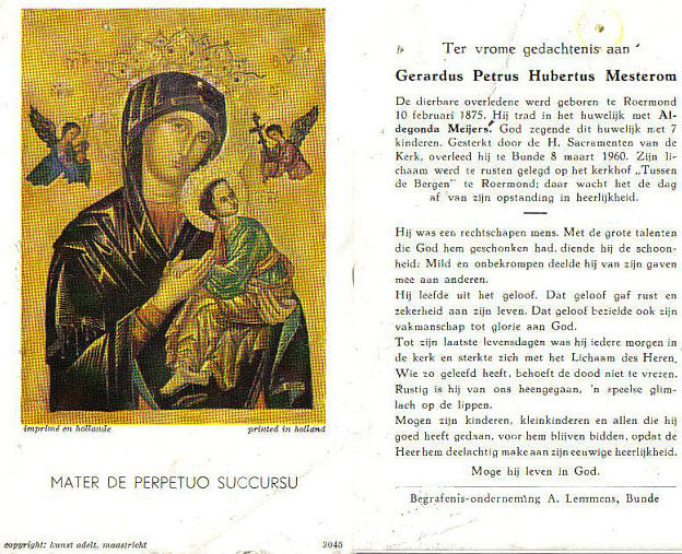 Geb: Roermond 10 feb. 1875. Overl: Bunde 08 mrt. 1960. Gehuwd: Meijers Aldegonde.