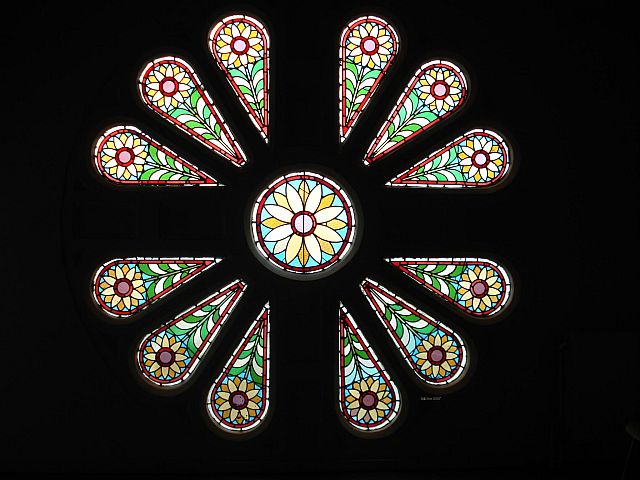 De glas-in-loodramen zijn van de gebr. Den Rooijen.